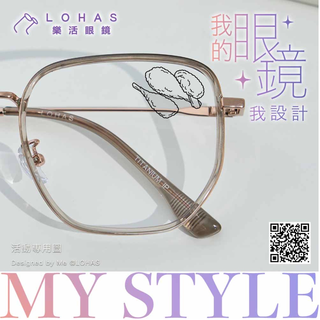 這是我參加 #我的眼鏡我設計 的作品 🎨 快幫我按讚!! 參加活動就能免費拿「客製雷刻券 +配鏡折抵券」 還有機會得到潮流AirPods!你也可以設計屬於自己的眼鏡!👉 https://www.lohasglasses.com/glasses-laser.html