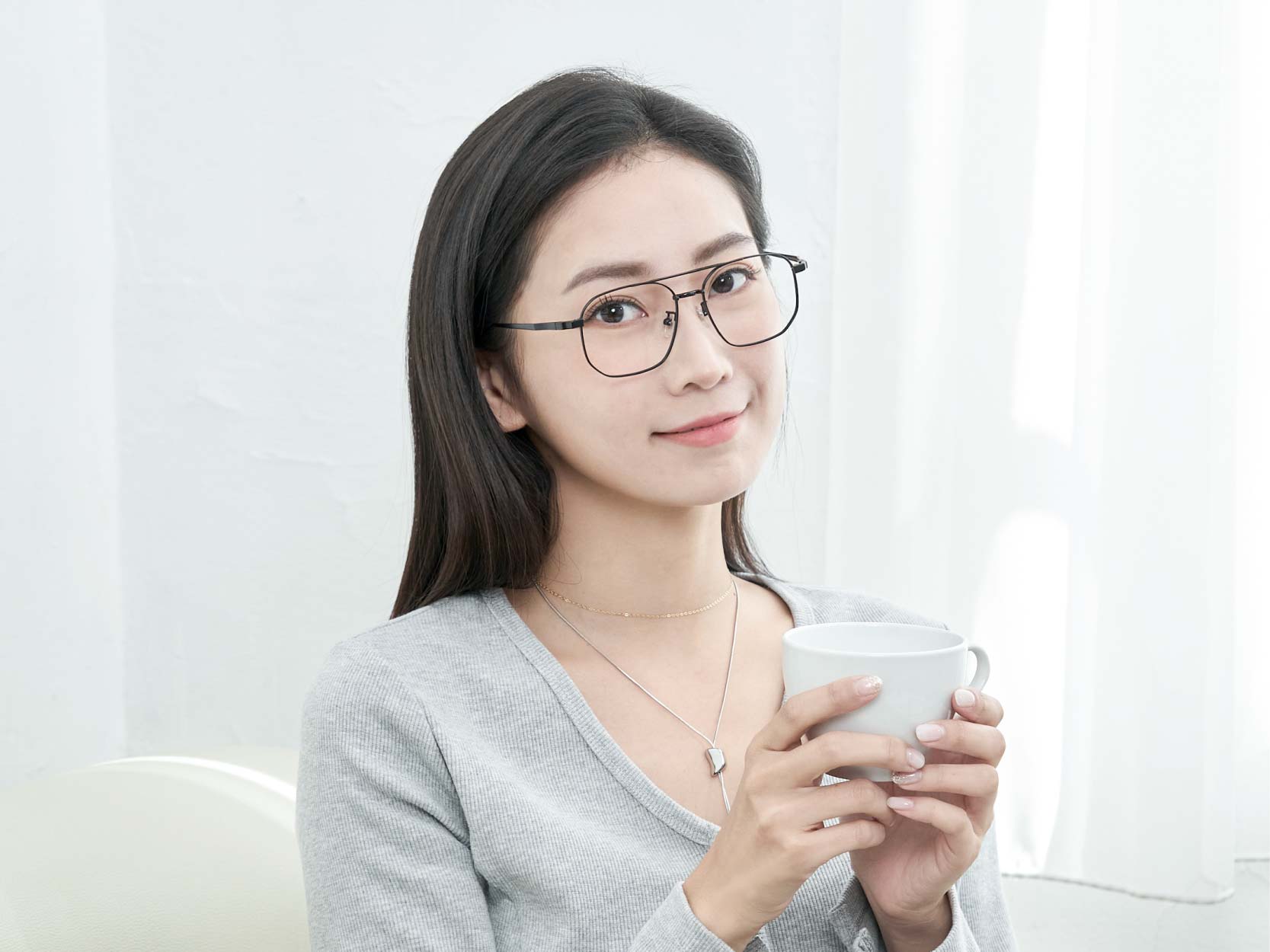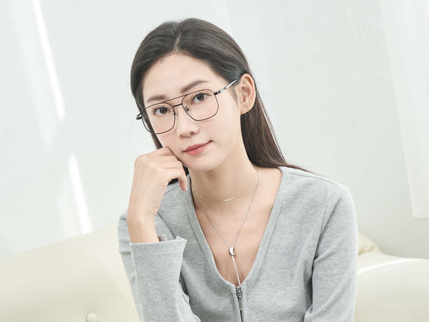 雙槓鏡框以俐落的金屬結構,打造出輕盈卻有存在感的造型