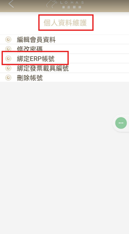 於「個人資料維護」中,點選「綁定 ERP 帳號」