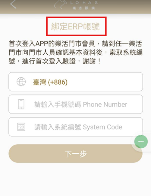 請依指示輸入您的手機號碼與該 ERP 編號。