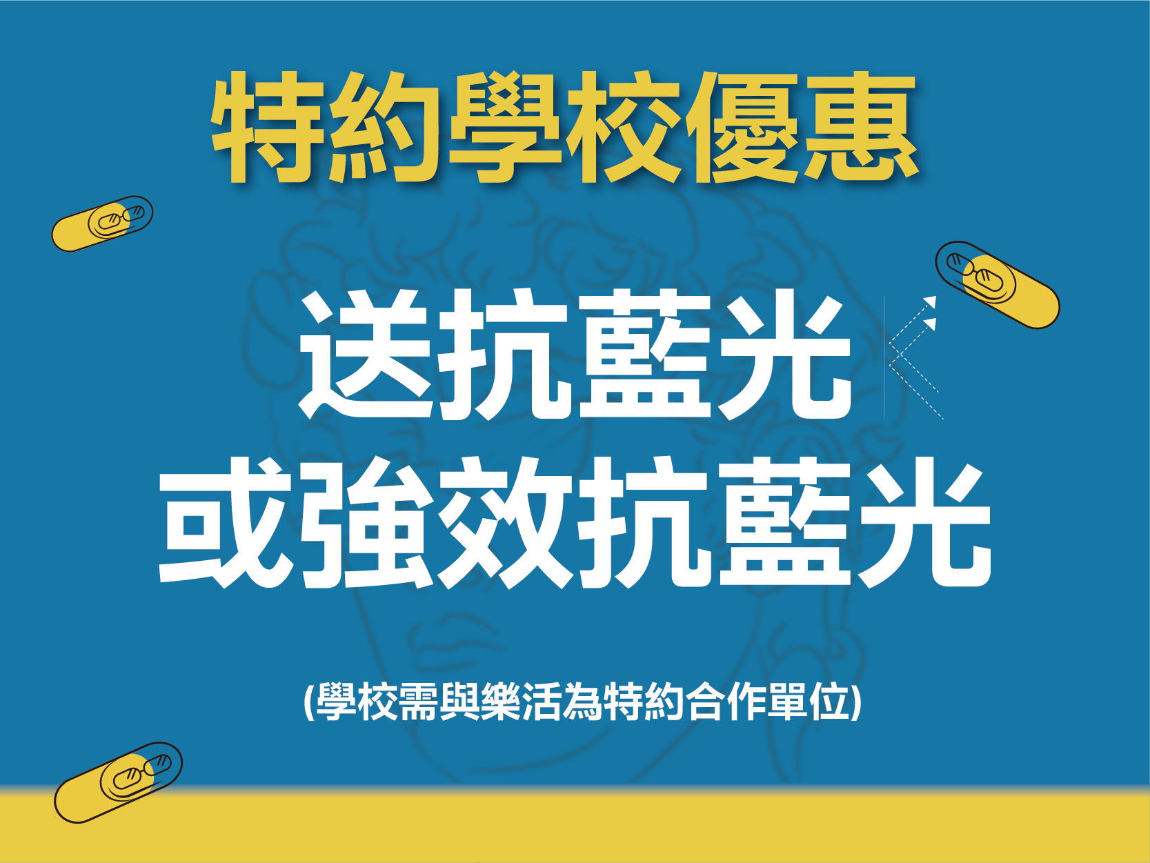 由於本活动报名人数众多,且门市尚有一般配镜的客人,请务必在您预约时段准时抵达,以免造成权益损失。如未在约定时间准时前往,将以一般客人与准时前往的大学生为优先服务对象。